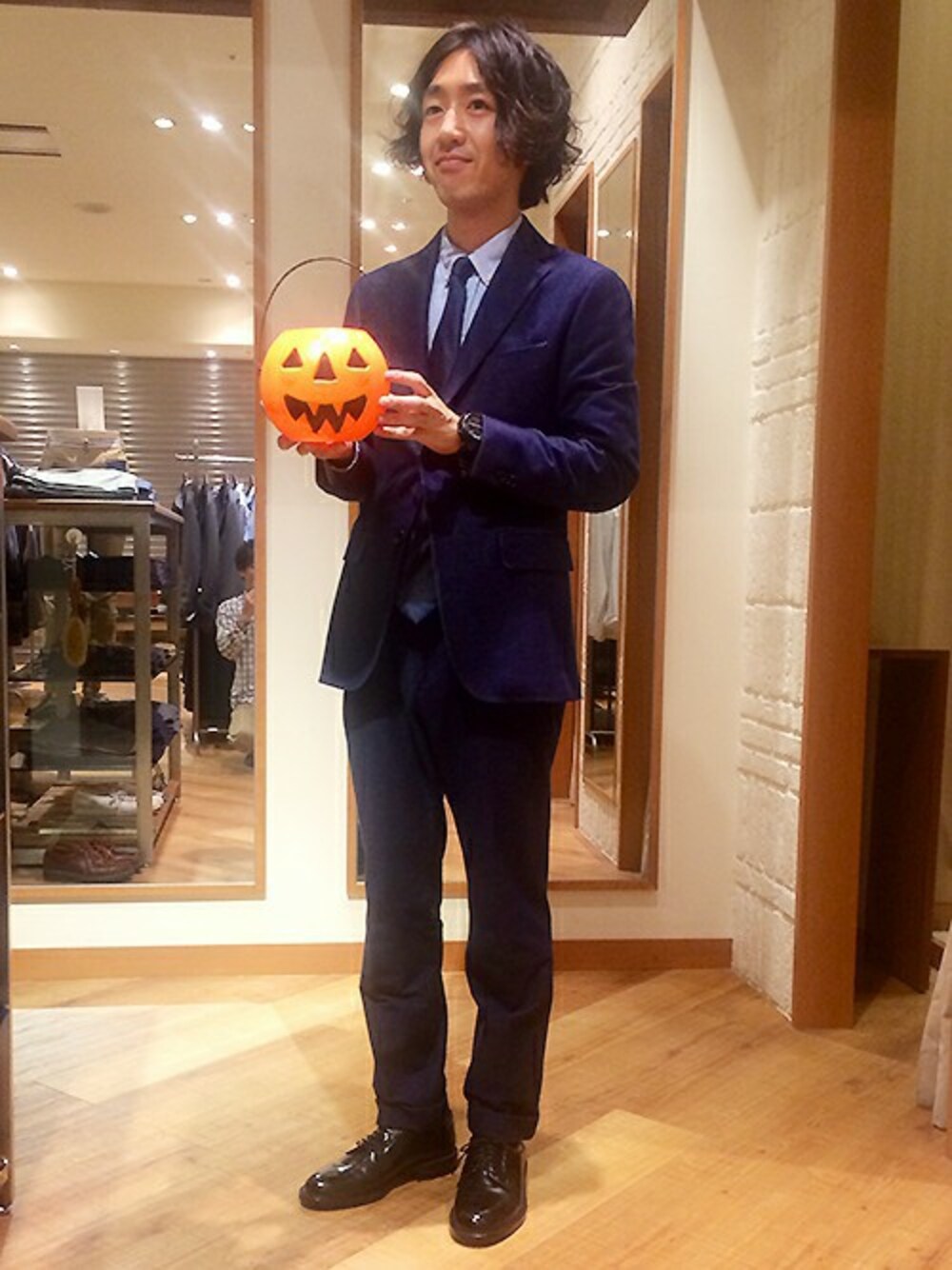 週末のハロウィンにはこんなきちんとスタイルも意外性があっておすすめ! 結婚式の2次会等にもぴったりのかっちりし過ぎないジャージ素材のセットアップ。 デニムカラーなので、いつものイメージから離れ過ぎずに着られるのも良いですね。 もちろん動きやすさもいう事なし、単品で他のアイテムともアレンジが楽しめます。 ◆スラックス(AF656301)ネイビー/44サイズ
