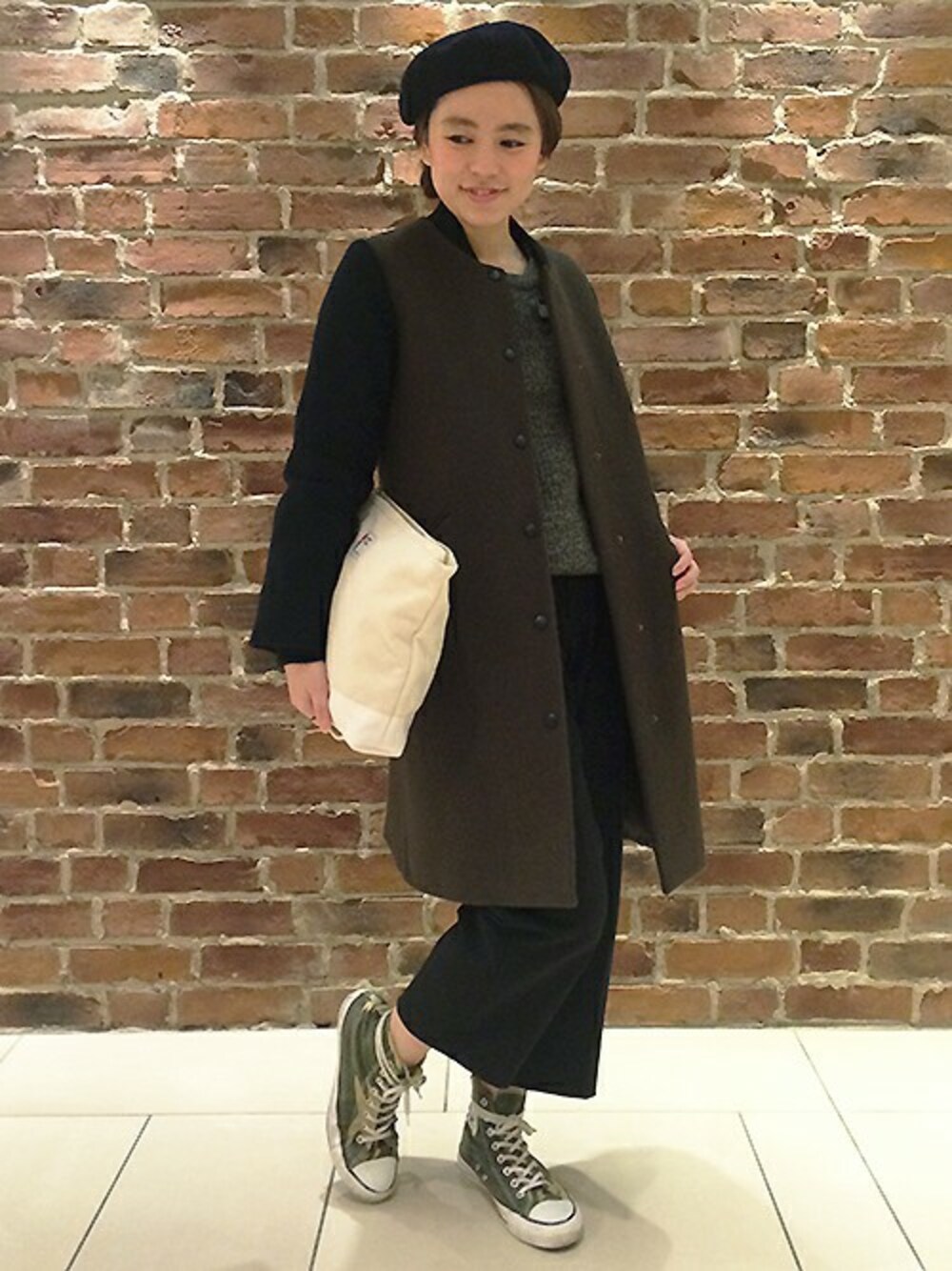 人気のスタジャンをロング丈にアレンジ! アウターもつい同じ様なものを選んでしまいがちですが、バリエーションとしておすすめしたい一枚です。 私の身長で膝より少し上くらいの着丈なので、ボトムを選ばず着られます♪ 今回はワイドパンツと合わせた大人カジュアルなスタイルに仕上げました。 足元をスニーカーでハズすのがポイントです!