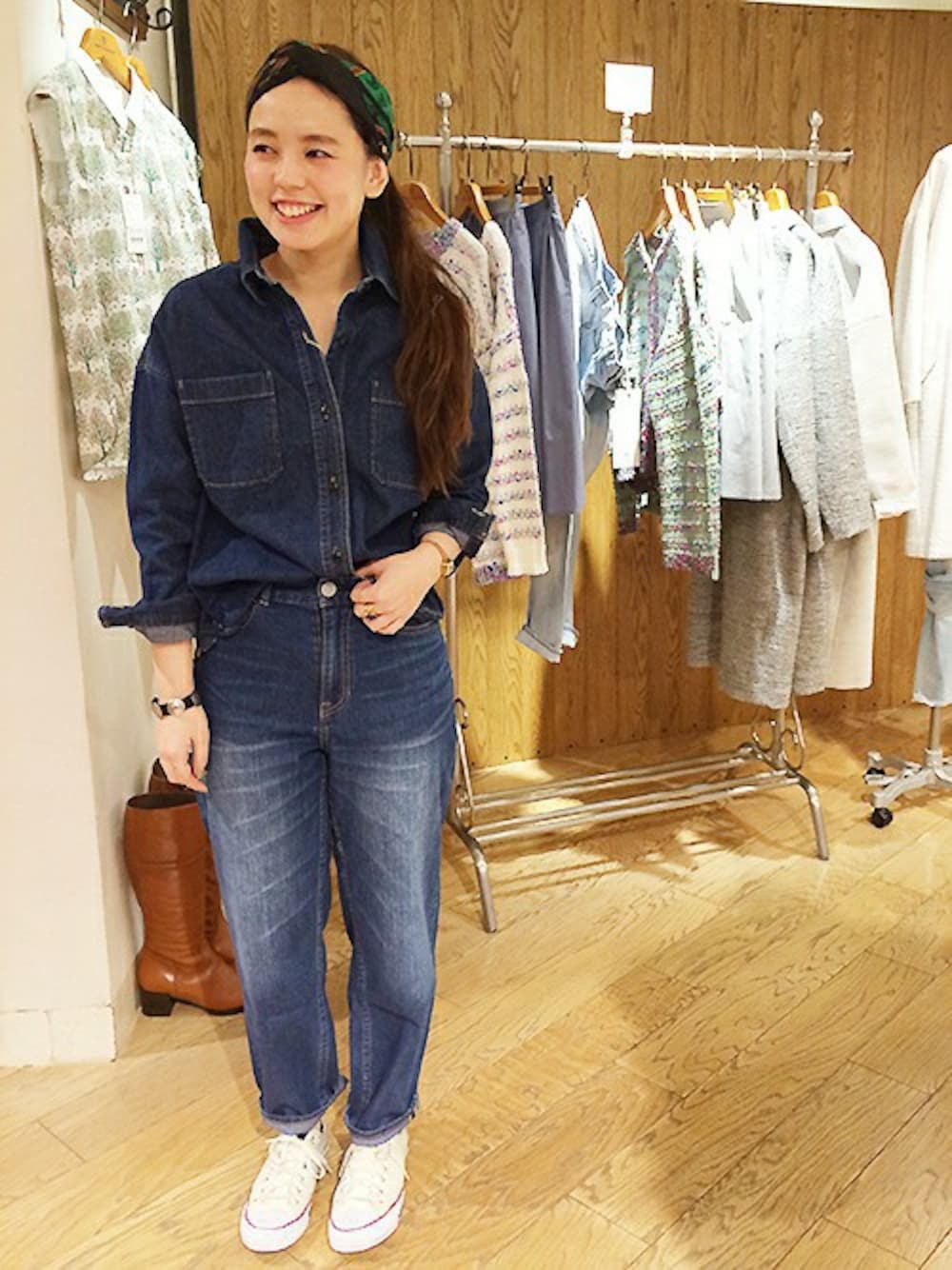 毎日のコーデに欠かせないデニム、大好きです。 横浜モアーズ店では「EVERYDAY DENIM」と題しておすすめのデニムアイテムをご紹介しています! 新作のゆったりシャツとルーズシルエットがかわいいボトムを組み合わせてみました。 デニムオンデニムは結構難易度が高めな気がしますが、裾や袖をロールアップして軽さを出すと ジャンプスーツの様にアレンジが出来ます。 もちろんヘアアレンジや小物で女の子らしいポイントを忘れずに! 【EVERYDAY DENIM】 毎日のコーデに欠かせない相棒と言えば、デニム。 定番だけではない今の気分にピッタリのデニムアイテムをご用意しております。