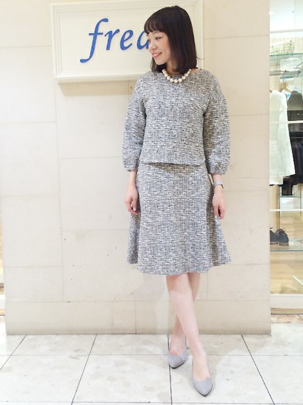 にの(fredy 上大岡店)のTシャツ/カットソー「ニットツイードプルオーバーカットソー」を使ったコーディネート