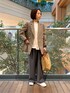 ◎ジャケット 秋にオススメのチェックのダブルジャケットです! とにかくシルエットがキレイ‼︎肩がスッキリ見えます。 裏地付きで、滑りが良くストレッチもあるので着心地抜群! 秋から冬にかけて着やすいですよ。 袖を折って裏地をみせるのもポイントになりま す。 ◎トップス ポリフェザーの素材が可愛いベスト! 秋はシャツ、ロンTと着用可能です。 大き過ぎないサイズ感が大人カジュアルにもオススメですよ! ◎パンツ とろみのあるパンツは、どの体型にも合う 美脚パンツです! ストレートに落ちるシルエットで細見えしますよー^_^ 153㎝で竹詰めなく穿けました。 ◎バッグ A4サイズもしっかり入り、お仕事でも使える シンプル大人トートが入荷しています! マチもあり、お弁当、水筒、メイクポーチ、日傘もスッポリ。 肩掛け用のショルダーもついているので、両手も、空きます!