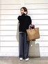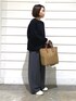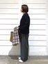 ◎ニット カシミヤ混でとても柔らかい着心地のニット。 シンプルながら、袖のケーブルラインがポイントになります。 白いインナーの重ね着がオススメです! ◎パンツ とろみのあるパンツは、穿きやすさはもちろん、 シルエットのキレイさが大人気! 153㎝36サイズで着丈もちょうど良かったです。 ◎バッグ お仕事にも使えるキレイめトート。 ナイロン製でとにかく軽い! マチがしっかりあるので、荷物もたくさん入ります。
