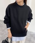 ◎トップス モックネックで、キレイめに使えるスウェット。 お腹のあたりにファスナー付きのポケットが2つあります。 裏起毛ではないので、春先まで使えます! インナーにシャツやボーダーのカットソーなどレイヤードがオススメ! ◎パンツ 少し起毛していて、暖かみのあるパンツ。 キレイ色がコーディネートのポイントになります。 ヒップはポケットがあり、身体のシルエットが目立ちにくい仕様。 セミワイドのシルエットで、小柄な方にもオススメです。153㎝36サイズで丈詰めなく穿けました。