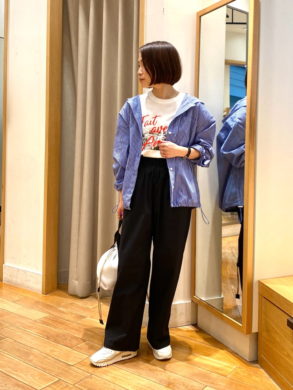 ⚫︎シャツ フードが新しい!張り感とシャカシャカした風合いが涼しいシャツ。 重ね着でフードを出したり、季節に合わせてアレンジできます! 裾を絞って短く着てもバランス取りやすいです。 インナーは、赤いロゴがアクセント!ツルツルした生地が大人カジュアルにオススメです^_^ ⚫︎パンツ ウエストが楽ちんゴム! 綿ナイロンの程よい張り感で 脚のシルエットを出さずに穿けます。 夏も快適な薄手でシャカシャカした風合いの パンツです。 153㎝36サイズでギリギリそのまま穿けました。
