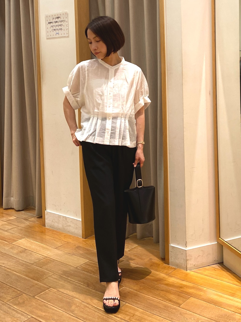 森まどか(FREDY&GLOSTER モザイクモール港北店)のシャツ/ブラウス「クロップドハーフスリーブブラウス」を使ったコーディネート