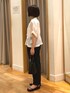 ⚫︎トップス パールボタンとウエストの切り替えがポイント! 袖もしっかりあります! 着丈がスッキリなので、ワイドパンツやスカートにも合いますよ^_^ 前を開けて羽織るコーデもオススメです! ⚫︎パンツ シンプルなテーパードパンツ。 ポリエステル100%でシワになりにくいです! オフィスコーデにも便利な一本。 153㎝36サイズで、くるぶしが隠れる長さ。 ウエストはゴムで穿き心地も抜群です^_^
