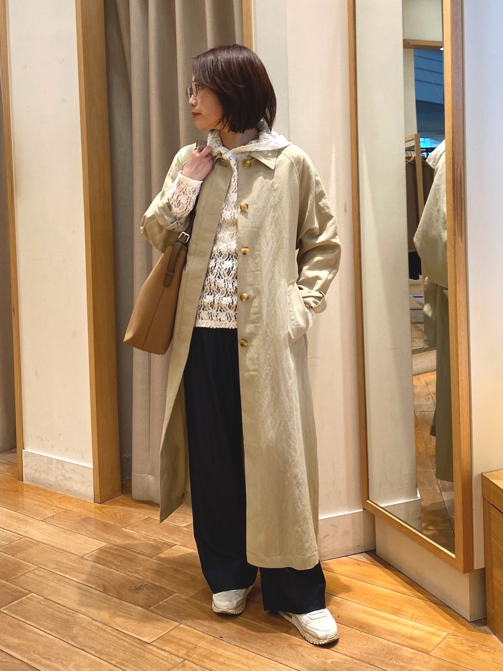 ⚫︎トップス 今年トレンドアイテムのレースのトップスは フーディ仕様で甘くなりすぎず使えます。 コンパクトなサイズ感で、ニットやスウェットをレイヤードするのもオススメです! シンプルなロングコートは、 裏地なしで軽い着心地。153㎝36サイズ着用です。 ⚫︎パンツ デニムライクなイージーパンツ。 カジュアル感は、抑えめです。 大人のリラックスコーデにオススメ! 153㎝36サイズ着用。着丈はそのまま穿けました!