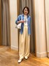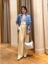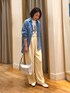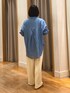 ⚫︎トップス 軽く透け感のあるデニムシャツは、 しっかり着丈があり、ヒップやお腹もカバー! サラッと羽織れるシャツは、インナーに重ねたり、腰に巻いたり、アレンジできますよ! インナーは、プリントが可愛いロンTで。 ⚫︎パンツ 今年のトレンドカラーである バターイエローをポイントに。 サラサラとした肌触り、ウエストゴム仕様と 穿き心地の良いパンツです! こちらは、1部丈ほどの裏地があり透けにくかったです。 153㎝36サイズで着丈そのまま穿けました!