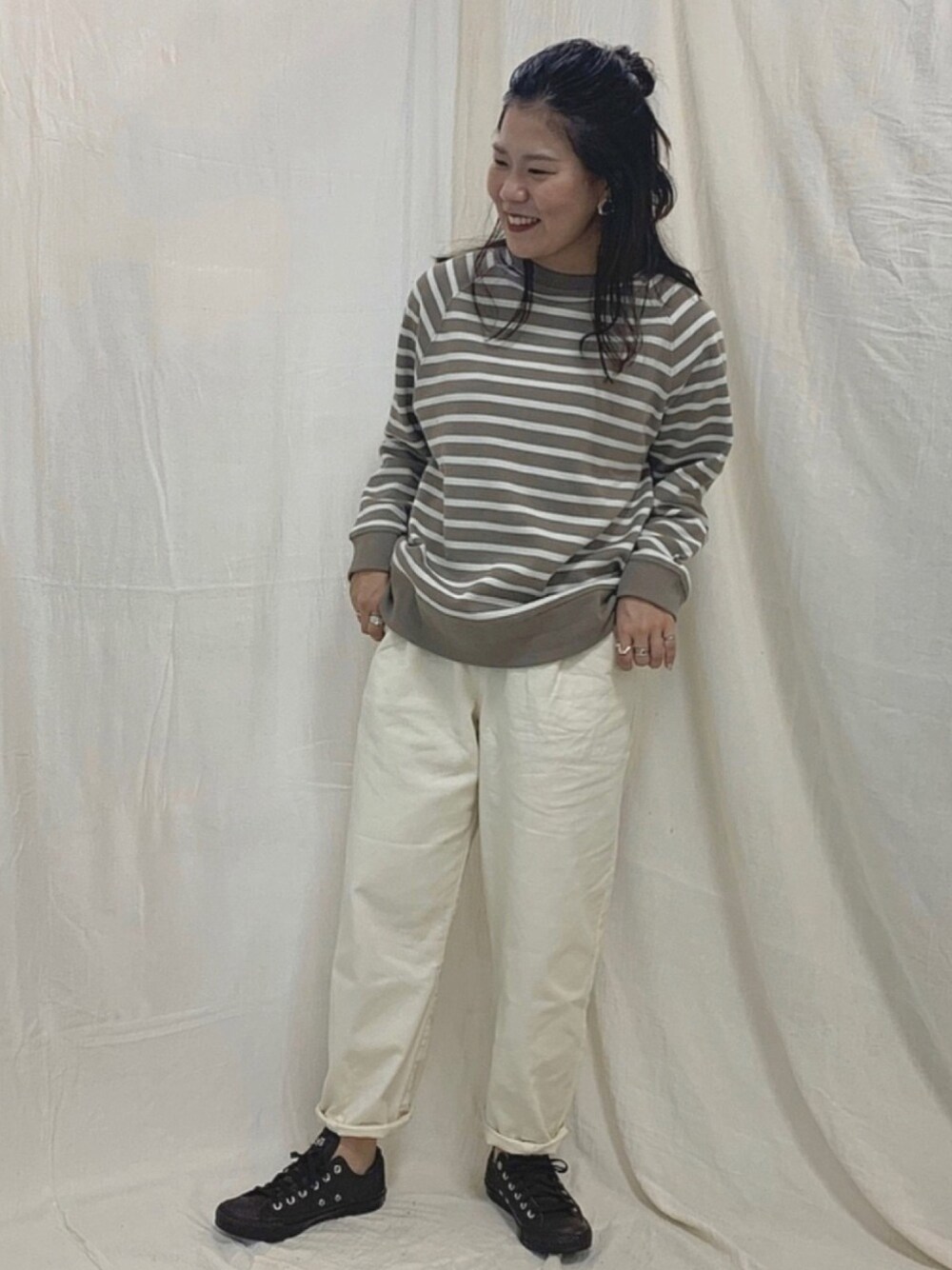 楽ちんスラウチパンツに トレーナー合わせのゆるっとコーデ𓂃 𓈒𓏸 パンツはワンピの下にも◎ instagram▷▶ @fuki_25