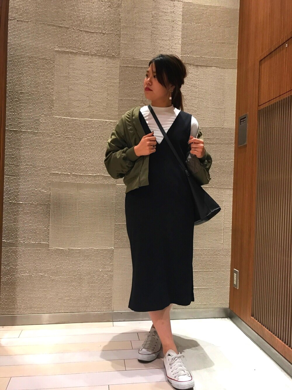 ジャンスカに今トレンドの肩落としでMA-1でこなれ感♪
