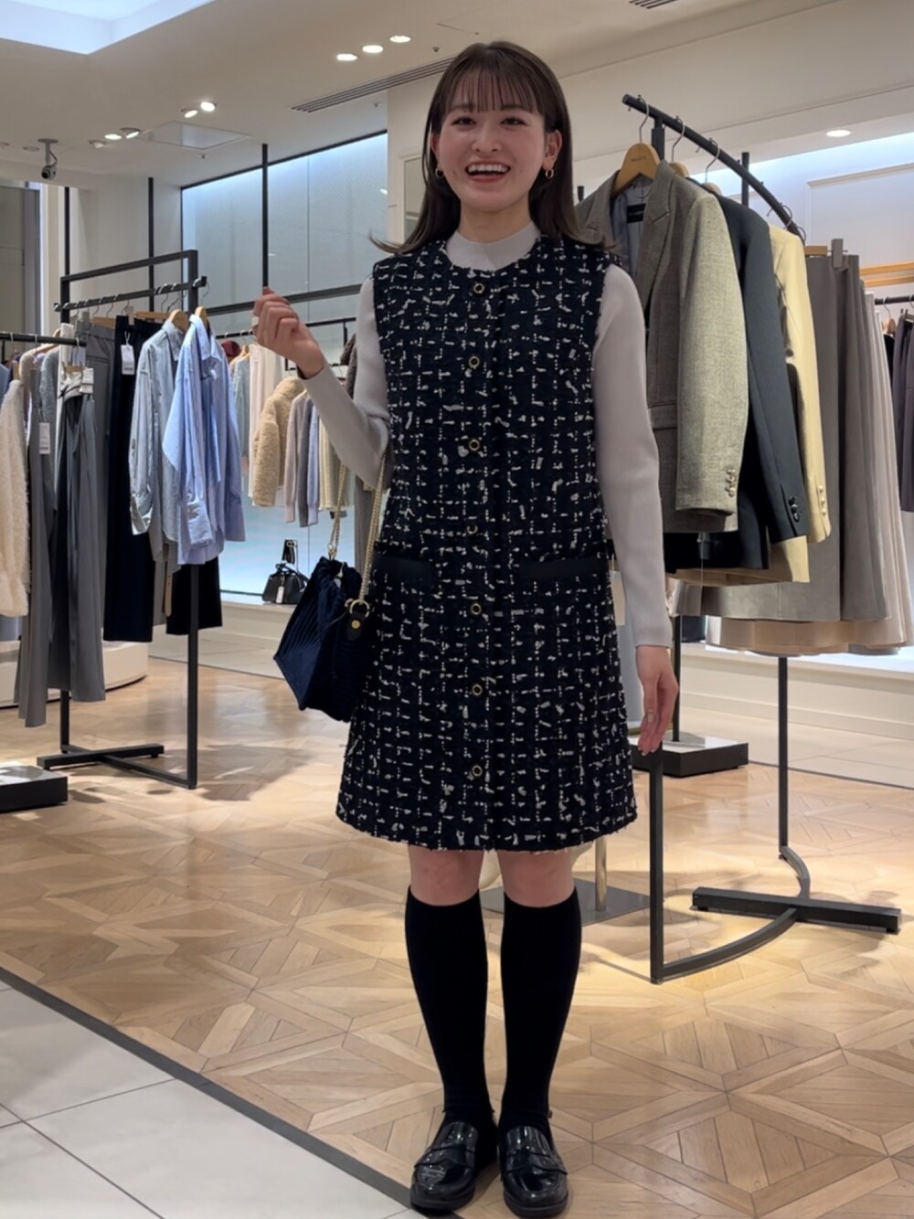 fhanaのワンピース「ツイードジレワンピース」を使ったコーディネート