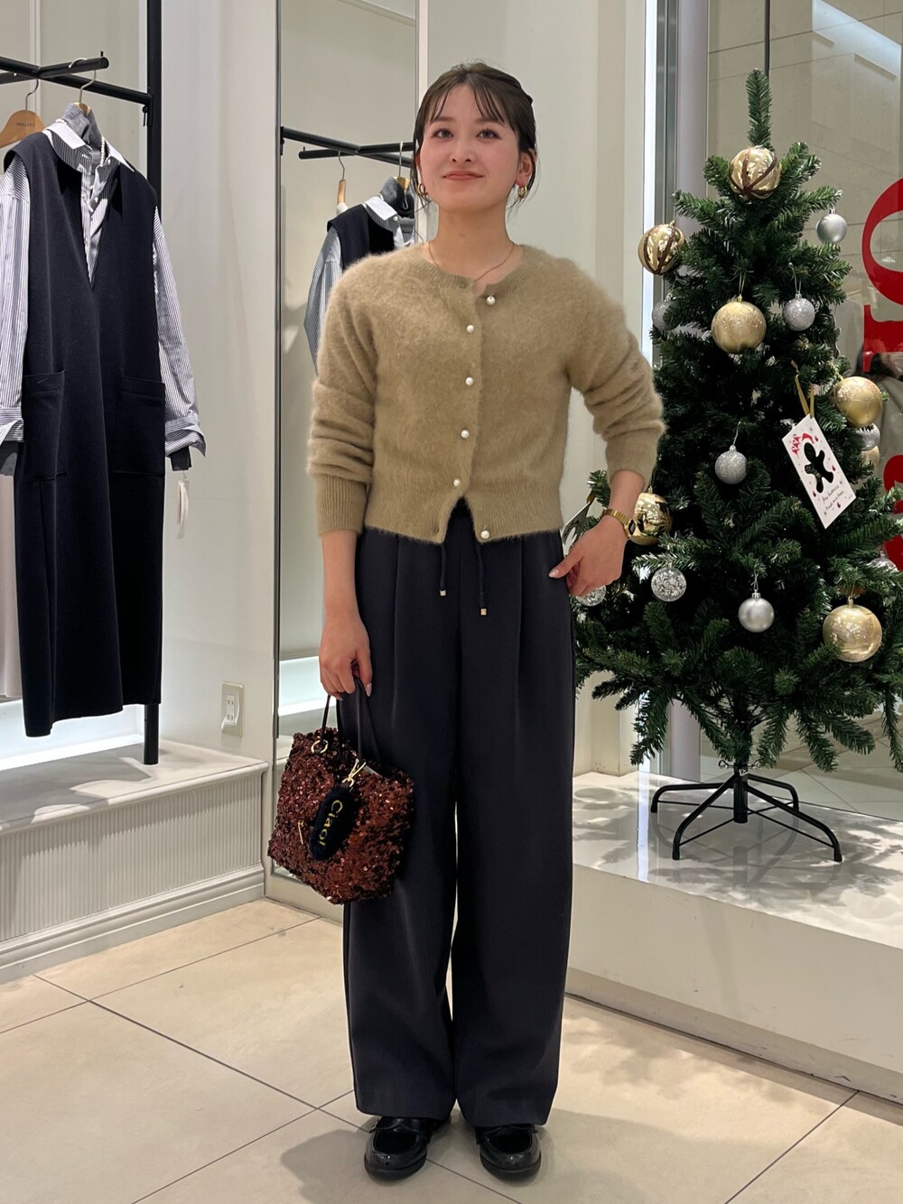 fhanaのカーディガン/ボレロ「カシミヤ混ヘアリーパール釦クルーネックカーディガン」を使ったコーディネート