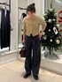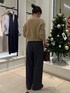 パールボタンがポイントのこちらのニットは通勤や綺麗めなコーディネートはもちろんカジュアルなボトムスに合わせても可愛いです! サイズ感もコンパクトなのでトータルのバランスがとりやすいのも嬉しいポイントです。 ボトムスは程よいゆったり感がありますが、着 丈も長すぎサイズ展開も豊富なので小柄な方から幅広く着ていただける1着です! ウエストゴムを内側にしまうとベルトを通せる仕様なのもコーディネートの幅が広がります。