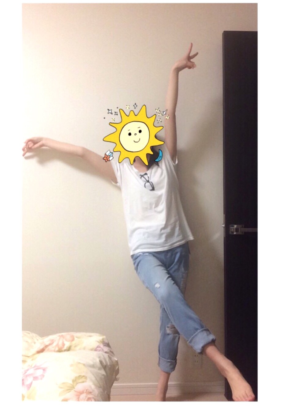 従姉妹とお出かけして初めてH&Mに入って 初めてこんな色のダメージ入ったデニム買いました。 喜び の 図。