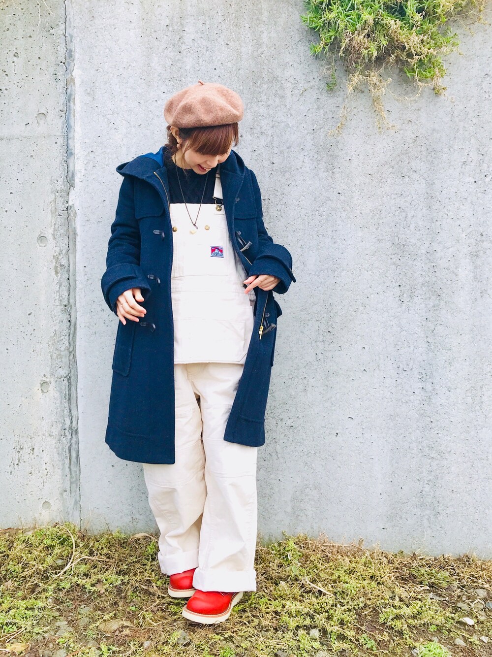 こんばんは☺️ お久しぶりです😊 BEN DAVISのエプロン付きオーバーオール♡ RED WINGに合わせて、ワーク感強めに🤜 ワーク仕様が男前なこちら、私の身長だとかなりのオーバーサイズでしたが😂、どうしても着たくて、ひざを保護するパッチを抜きとり、バランス調節✂️ 冬の写真なので、ダッフルコート❄️ もうすぐ夏…⛱