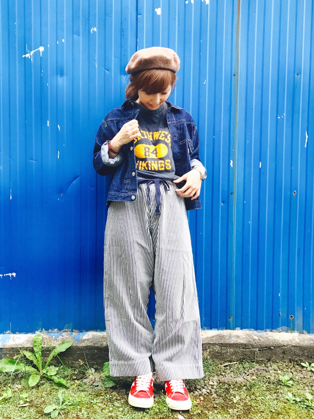 こんばんは😊 80s champion カレッジTシャツ orslowのデニムジャケット ヒッコリーのパンツに、赤のワンスター 古着mix♡ Instagram : uu._.u._.uu プロフィールから飛べます わりと更新するよになったので、よかったら遊びに来てください☺️