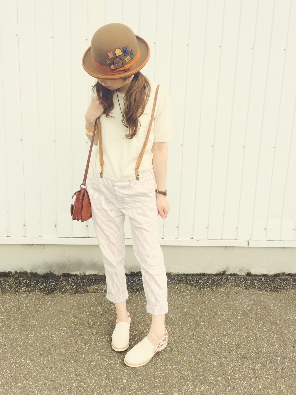 おはようございまーす😊♡ お盆の間に1日だけお休みがあったので、その日のコーデです♬ 小さーいポッケが付いている白ニットにストライプパンツに細いレザーのサスペンダー。 白のスリッポン。 ホワイトコーデのポイントに、CA4LAのボーラーハット被りました☺️ このハットいくつかワッペンが付いているのですが、そのうちの1つの扉が開くようになっているのです〜♡ これに惹かれて購入したのは言うまでもないです😍 いつも被るときに、1度扉を開けてみてから被っています☺️笑 そして、今日はサスペンダーフェス♡ 大好きなサスペンダーのフェスだなんて、もうにんまりです(o^^o) これからも、サスペンダーにはお世話になります😊♡ 楽しい1日をありがとうございます♡