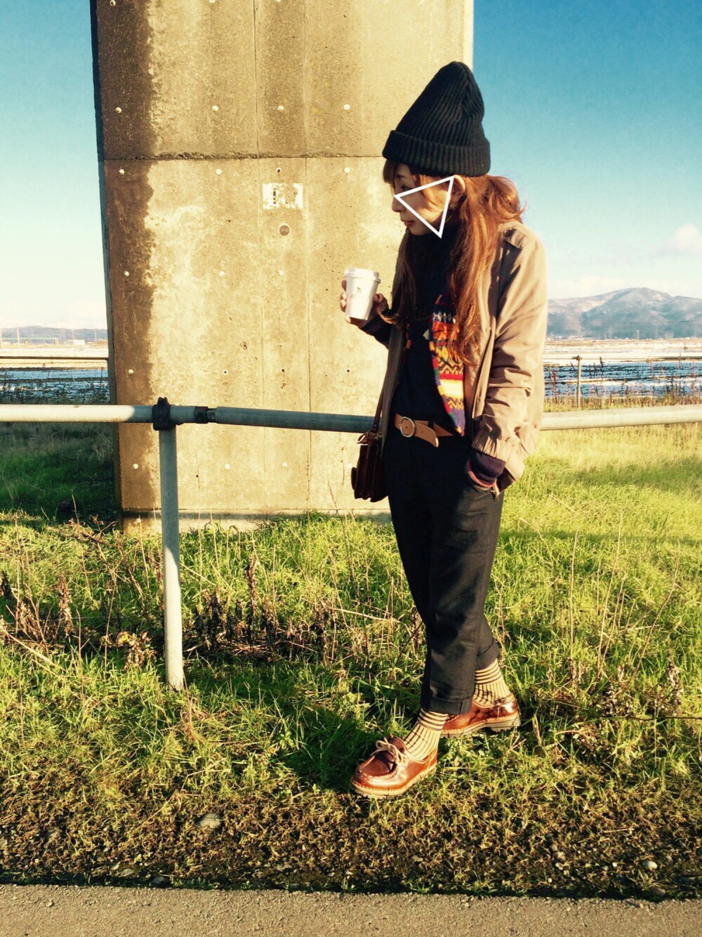 こんばんは😊♬ 今月の初めに撮っていた写真なのですが、気付けばもう月末でびっくり😵 ひぃ〜😂早い〜😂 夕日が眩しい時間帯に撮ったので、カラーがよくわからないのですが、ネイビーのタートルとパンツに、カーキのジャケットを羽織ったメンズライクなスタイリング。 ちらりと見えるよにベストを重ねました😊 ニット帽は頂き物😁♡ ダナーのチロリアンで足元も男前に😚♬