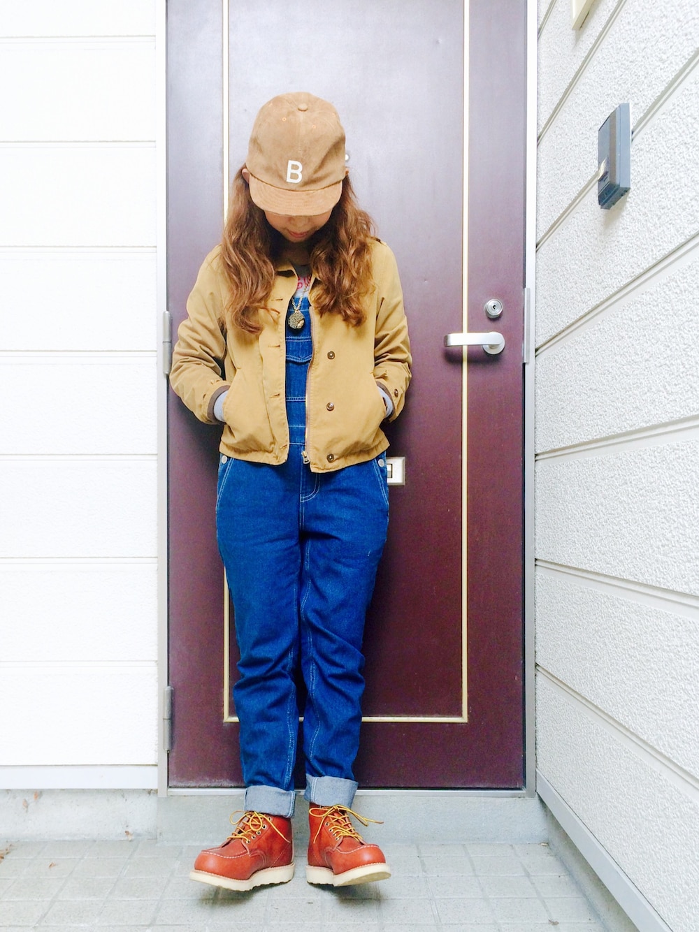 こんにちは😊✨ すこし前の、休日スタイリング♬ デニムサロペットとRED WINGでボーイッシュなアメカジスタイル♬