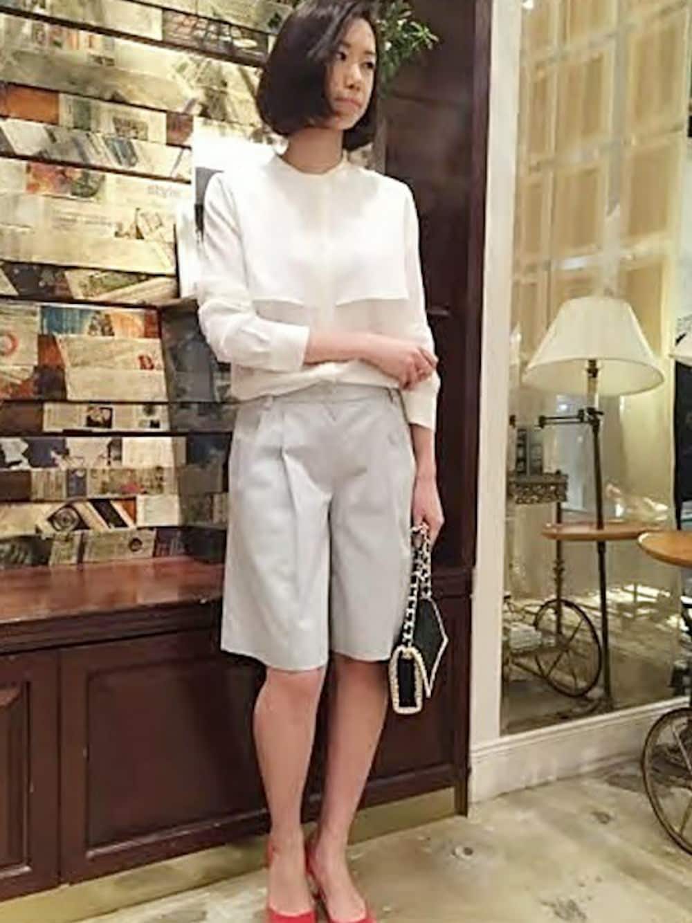 タック入りのキュロットパンツ。 さらっとした涼しげな生地で、夏でも快適に過ごせます。 とろみ感のあるシンプルなブラウスで大人っぽく。