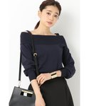 透け感のあるボーダーが印象的なスカート。 シンプルなオフショルダーニットで合わせてスカートを生かしたスタイリングに。