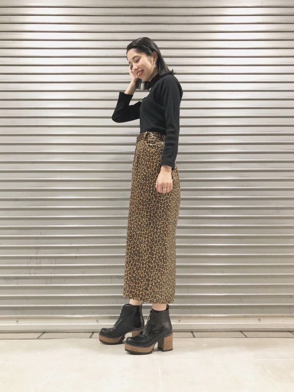 フィー(JEANASIS ルミネ大宮)のスカート「ロングペンシルレオパードスカート/815160」を使ったコーディネート