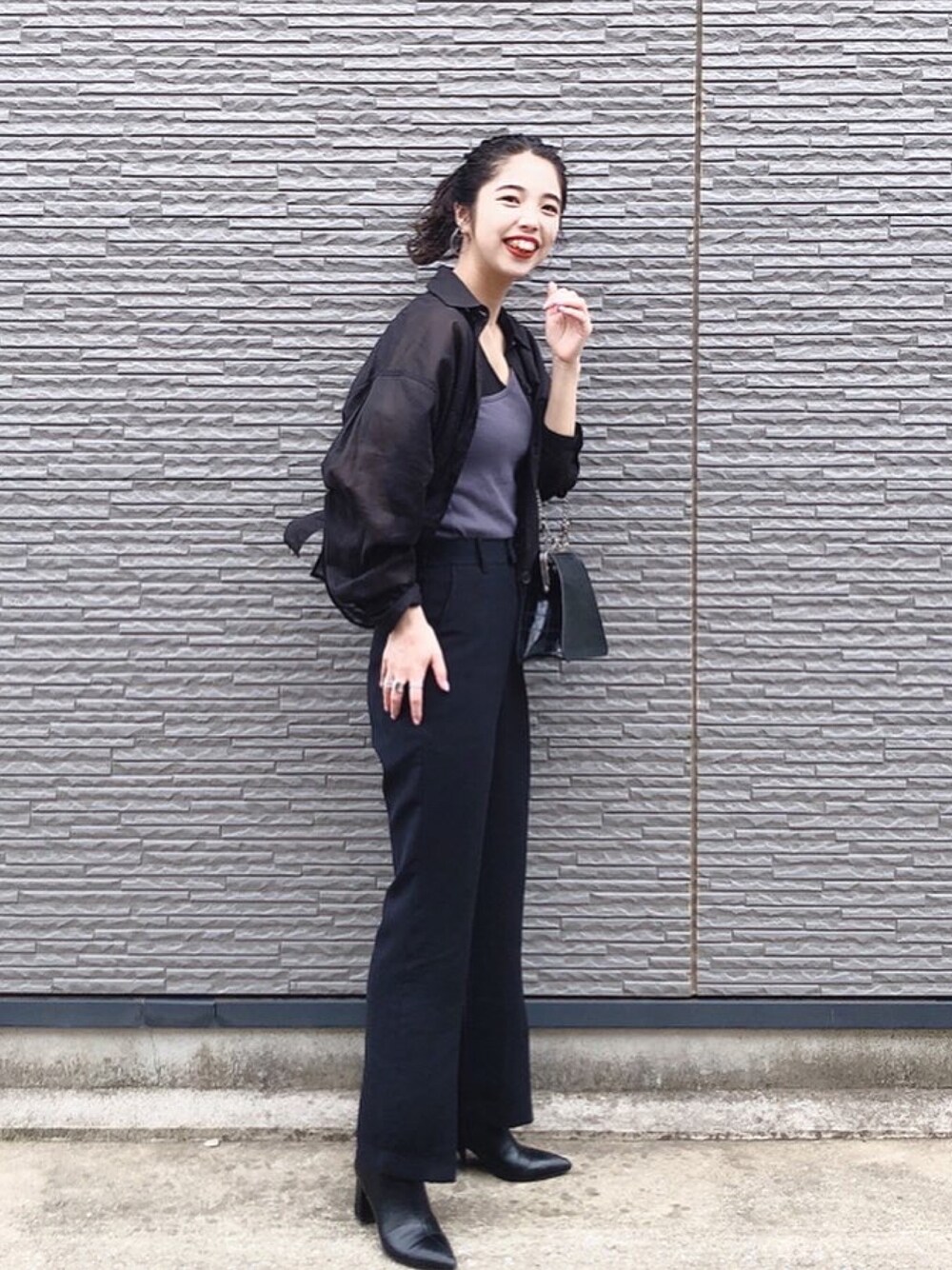 ふぃの私服コーデ♡ 最近またBLACK熱が…♡ この間のせたシアージャケットの 羽織りバージョンです☆ シアー素材なので、まだまだ使える! 夏の日除けにも使えそう♪ Instagramにも毎日コーデUPしてます♡ ▷@_fiichan_