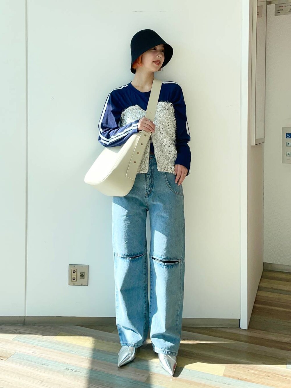 フィー(JEANASIS ルミネ大宮)のデニムパンツ「スリットデニムパンツ/105313」を使ったコーディネート