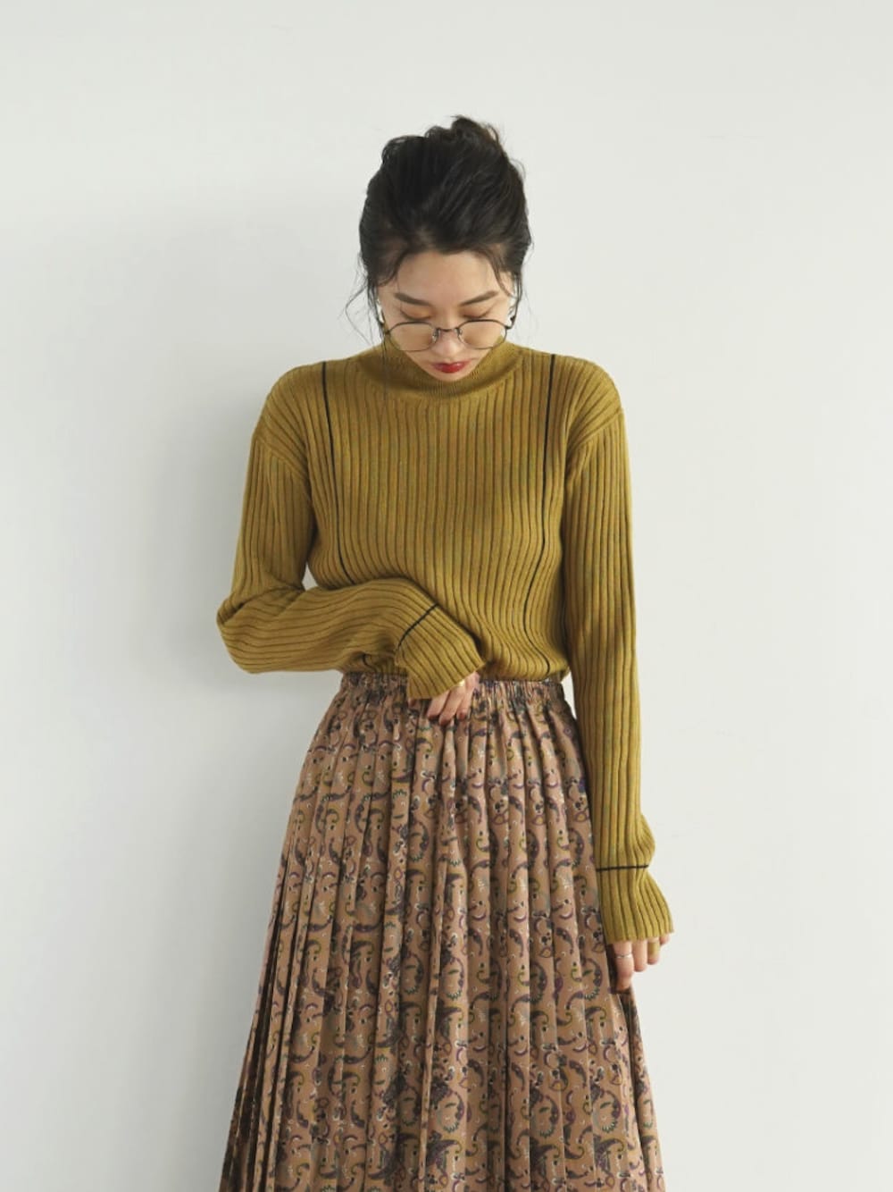 FIKA. mustard 161cm シンプルかつおしゃれ見えするリブニット。 ラインの入ったデザインがひと癖あって、アウターを羽織っても存在感があります。 締め付けすぎず、大きすぎずなサイズ感もお気に入りのポイント!長く使えるので色違いでゲットするのもアリですね◎