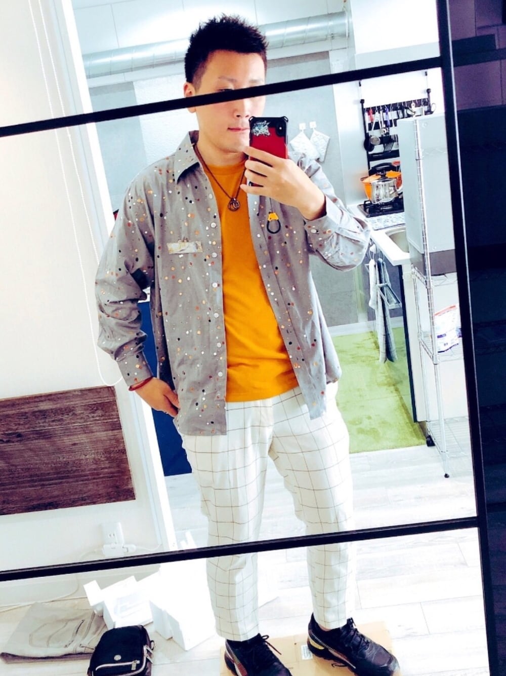 初投稿です。いいねありがとうございます。 最近柄シャツがお気に入りで 古着の絵の具シャツの色味が映えるようまとめてみました。