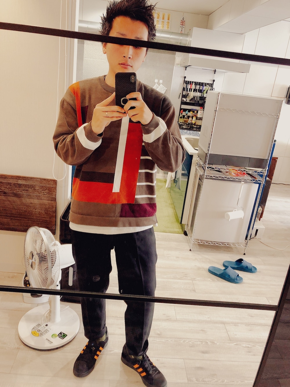 本日のコーデ campus adidas×porter コラボのスニーカーを購入したので オレンジメインに白のラインにこだわってユニクロのインナーで白ラインを増やしてます。