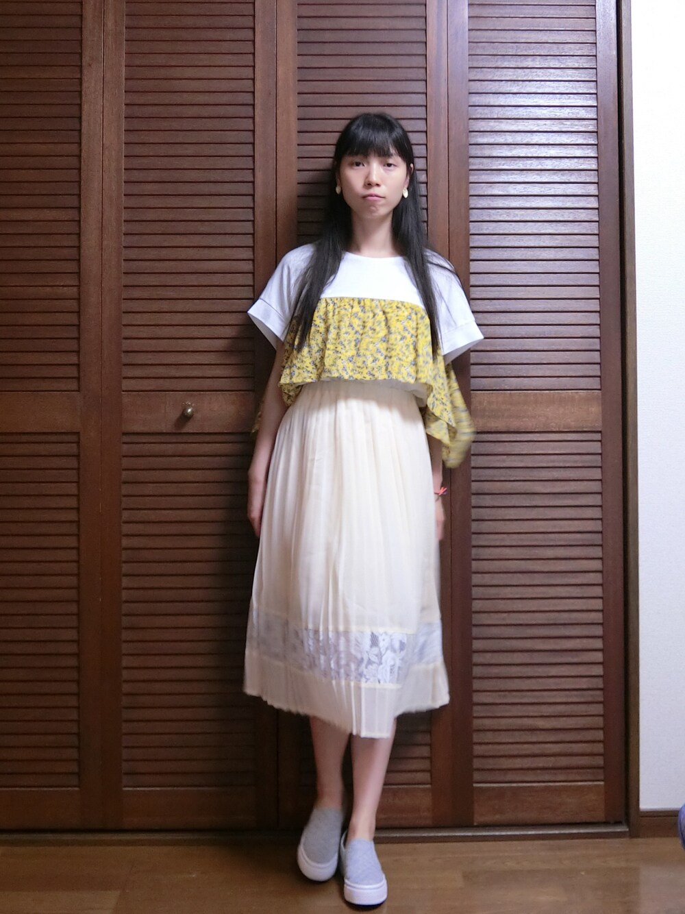 Myuのスカート「レース×ジョーゼットプリーツスカート」を使ったコーディネート