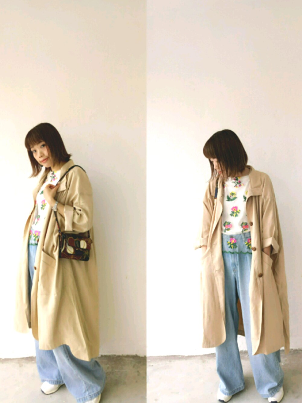 一目惚れのフラボアトレンチコートx刺繍ブラウス🌸🌻💖