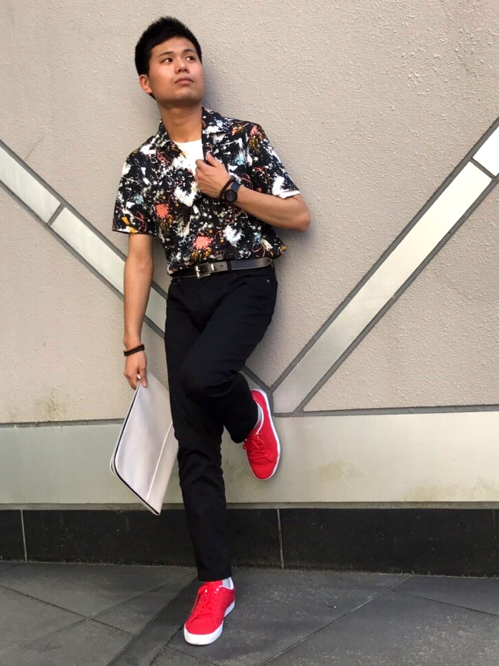 皆さん初めましておはこんばんにちわ😎 今回「WEAR」初投稿させて頂きました、naotと言います❗️ これからどうぞ宜しくお願いします❗️ 今回のコーディネートのテーマは 「もうちょいで夏⛵️だし〜、夏らしいコーディネートを!」 というイメージで投稿させて頂きました。 夏なのに黒を選んでしまったところは反省ばかりですが、なんとかっぽくはなったのかなぁ〜とは思います😎 また今回、友人と「WEAR撮影会」という感じで撮ったので和気藹々とできたかなぁ〜と思います❗️ これからもちょくちょく更新出来ればと考えていますのでどうぞ温かい目で見守っていただければと思います😘😘😘