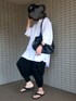 実はこのサルエルいつものやつとは違うんす いつもは無地、今回ステッチ (※5枚目の写真参照) 白面積を大きくするとなんとなく涼しげになる不思議