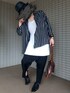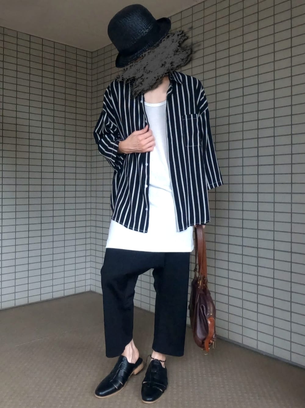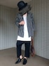 細めのストライプはカッチリとし過ぎるため 前を開けてラフ感出しました。 寒い時期はシックなインナーとしても便利です。