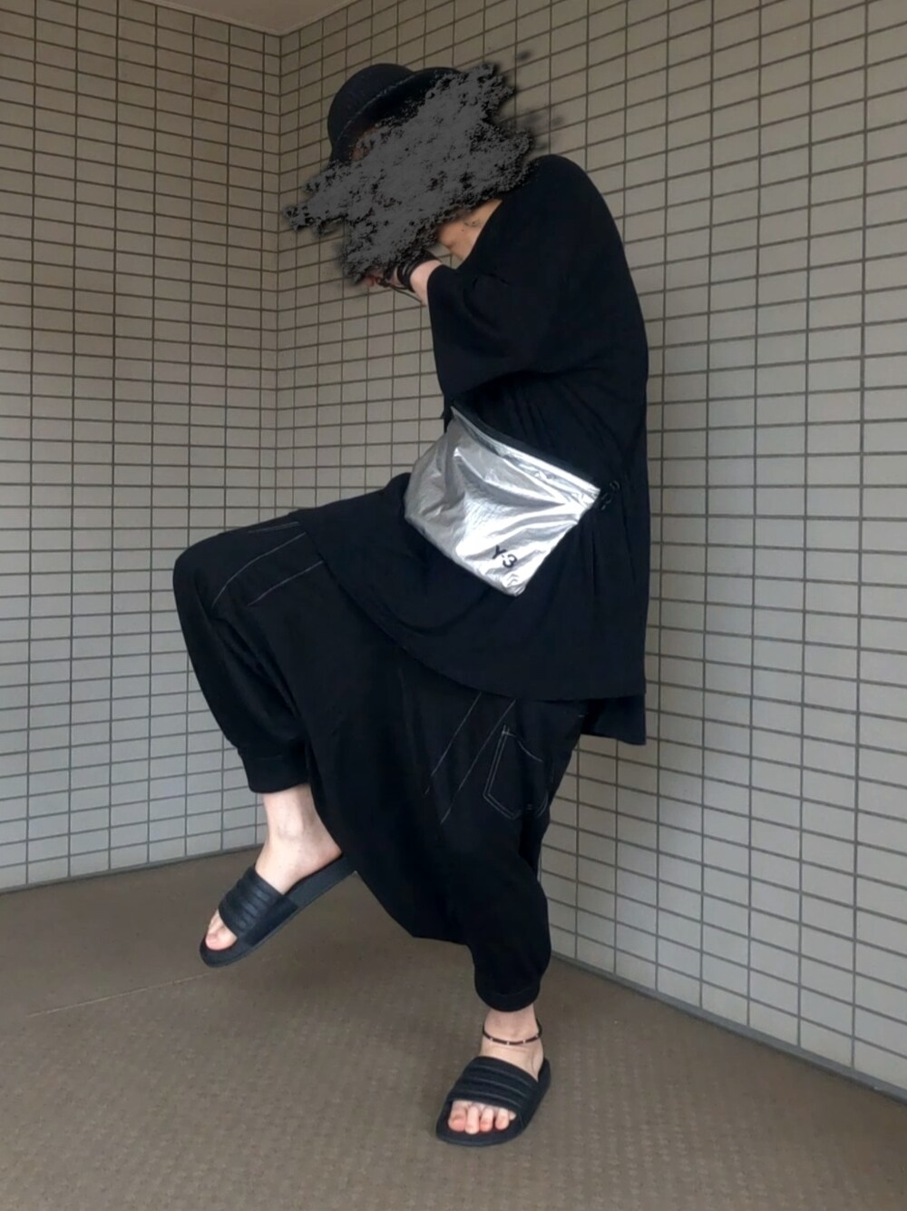 定期的に訪れる真っ黒になりたい発作 全黒には派手めなバッグでバランス良くなるかも。 サルエルの開いた時にボワンってなる感じが本当に好き