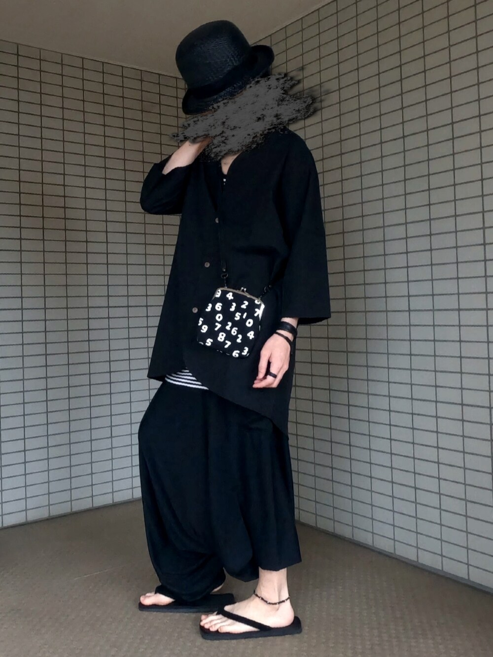 このサルエル気に入ってしまって2日連続失礼します ノーカラーの和っぽい?ジャケットを合わせたら意外にアリ! 去年の夏から寝かせてたやつなの本当ありがとうサルエルパンツ。