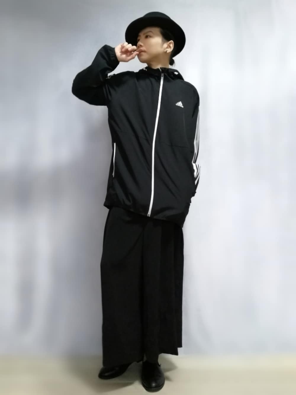 スポーツブランドも黒で統一するとカッチリ決まり良い感じに ウインドブレーカー風なので寒さ対策もばっちりです。 ジッパー部分が白のためモノトーンのアクセントになります。