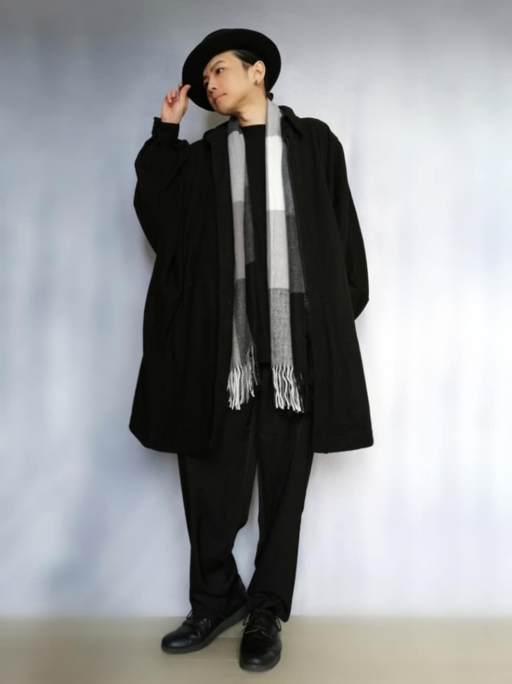 堀田(ほった)のマフラー「フリンジ ブロックチェック ルーズマフラー」を使ったコーディネート