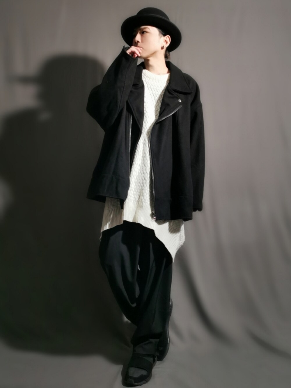堀田(ほった)のライダースジャケット「ビックシルエットウールライダース」を使ったコーディネート
