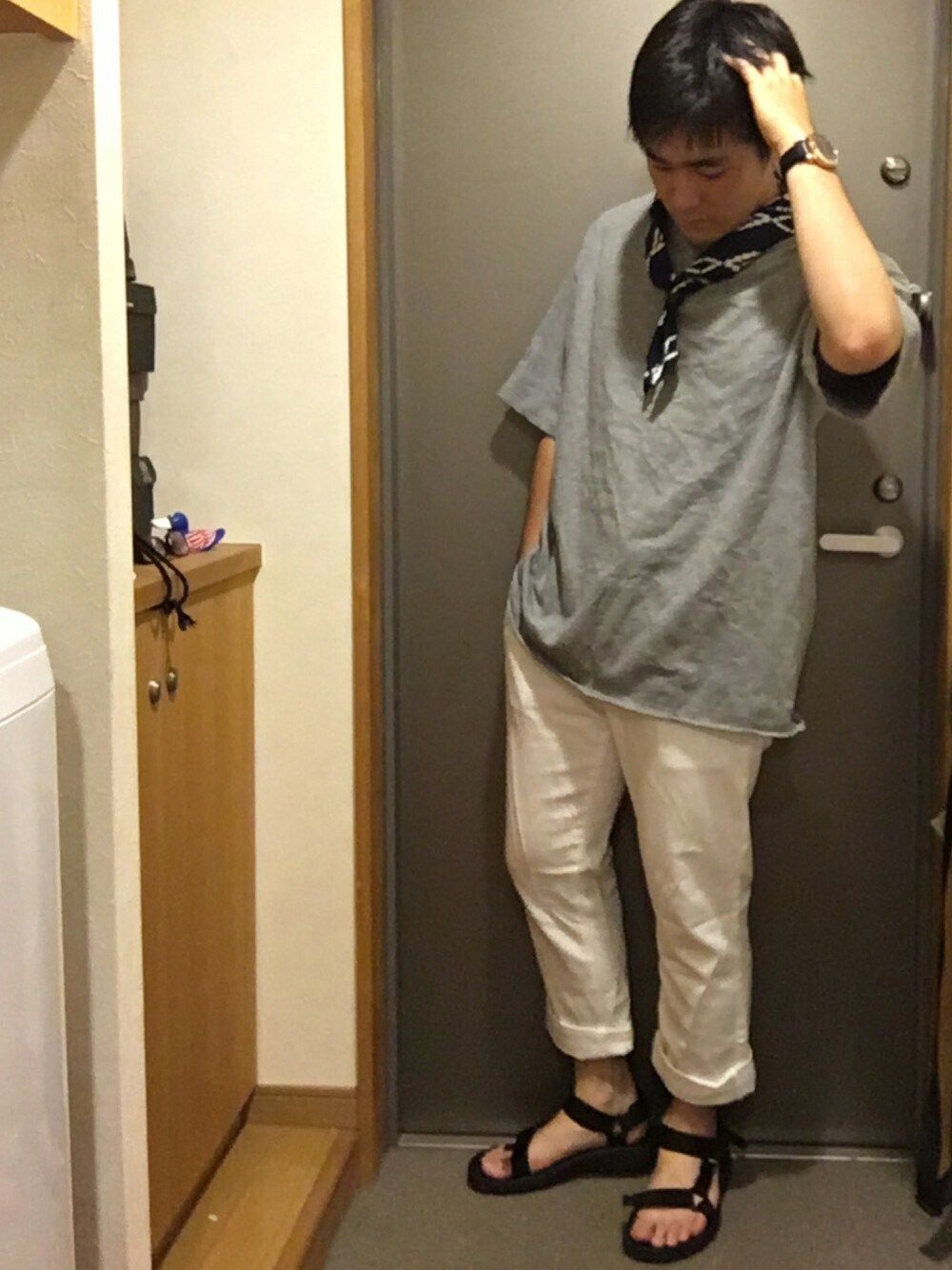 Tomoya#11のバンダナ/スカーフ「オルテガ柄スカーフ」を使ったコーディネート