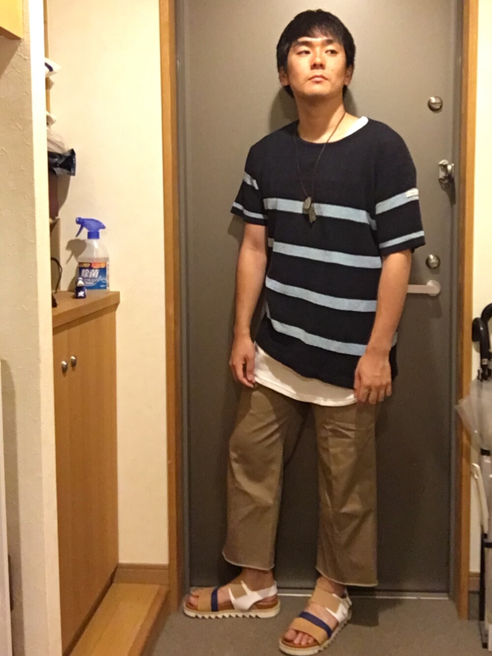Tomoya#11のニット/セーター「綿麻マリンボーダーニットTee」を使ったコーディネート