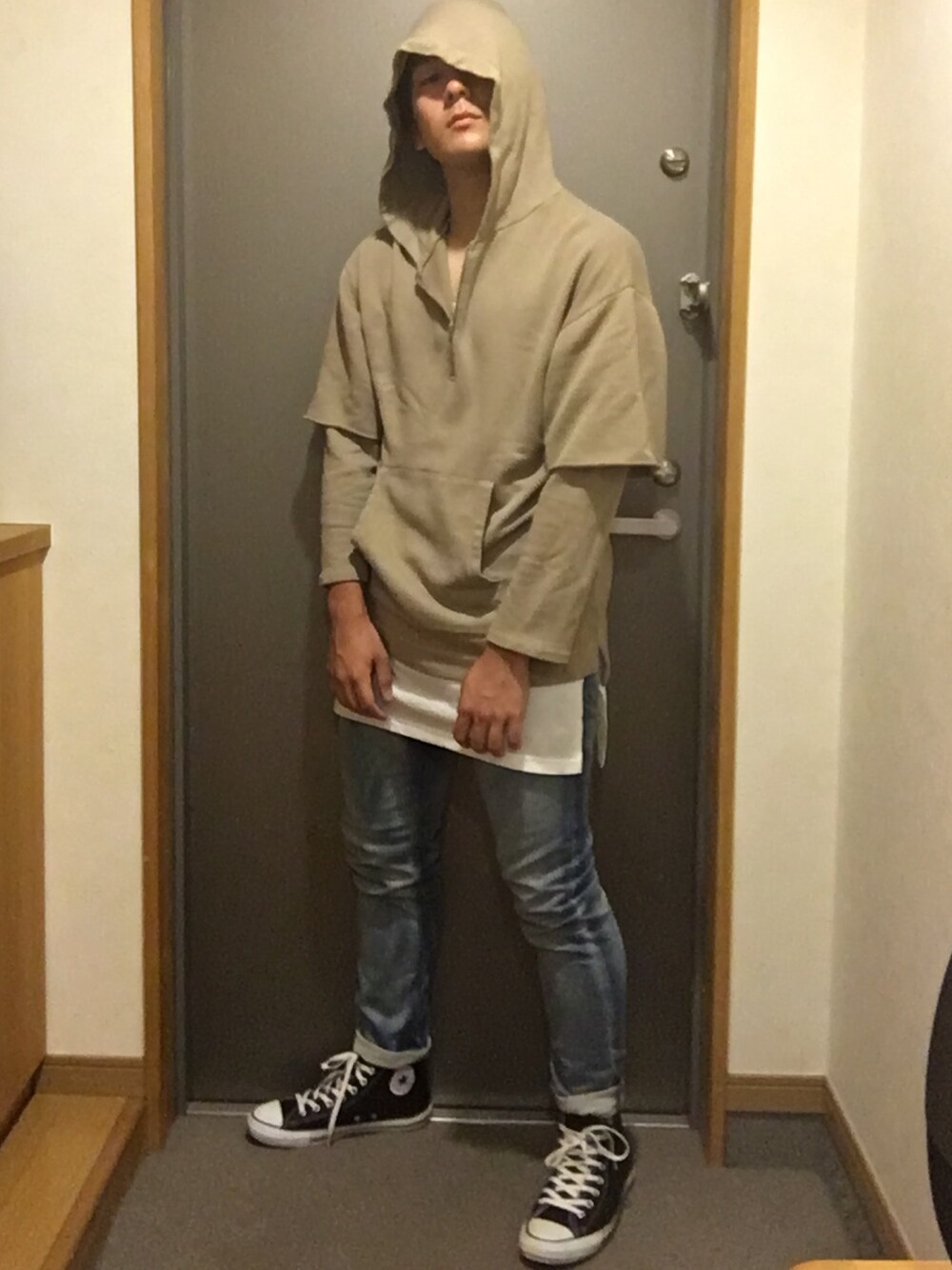 Tomoya#11のパーカー「<monkey time> オーバーダイ ウラケ レイヤード フーディー◆」を使ったコーディネート