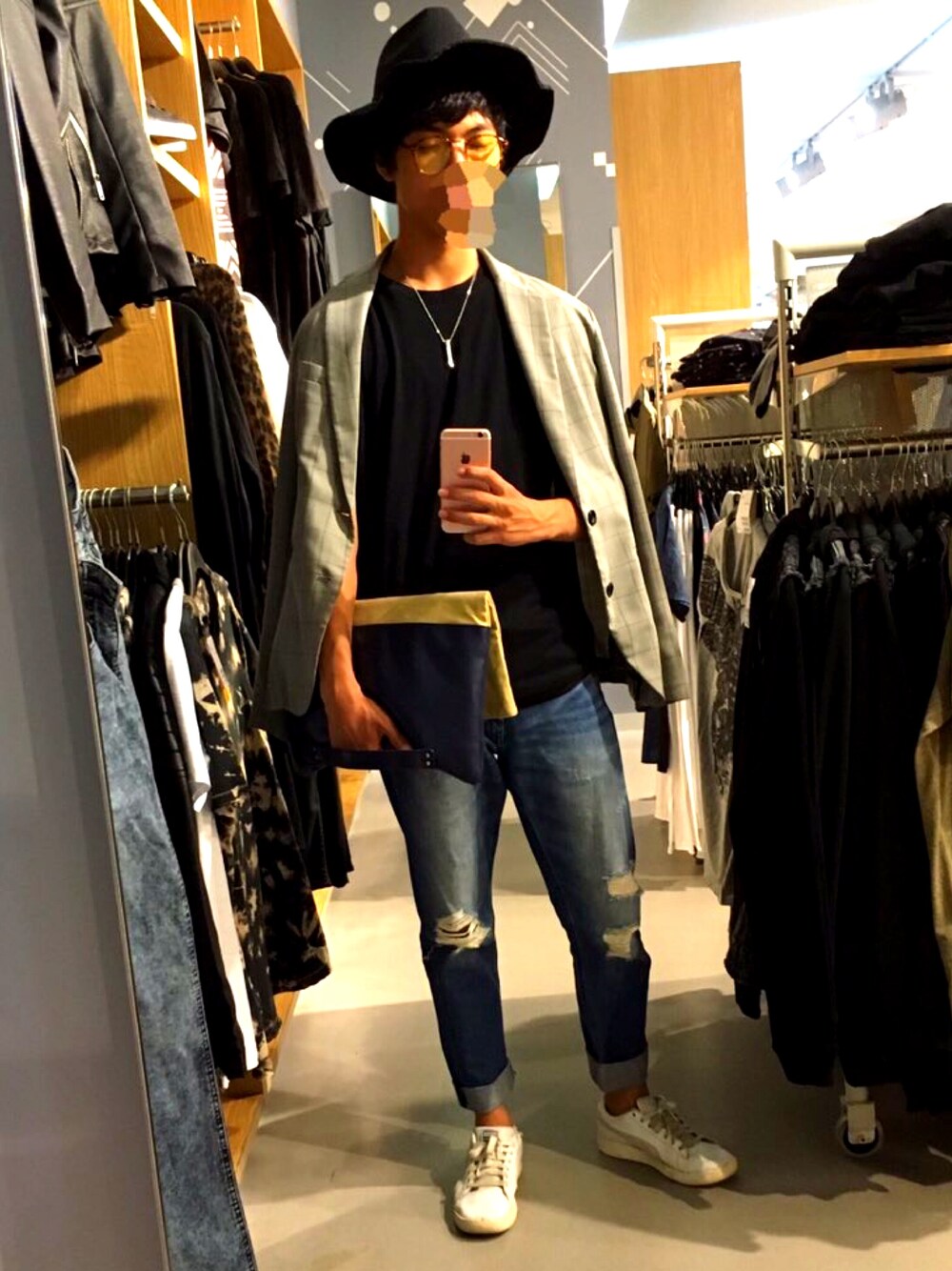 “Mizuki”のクラッチバッグ「◆配色2wayクラッチバッグ」を使ったコーディネート