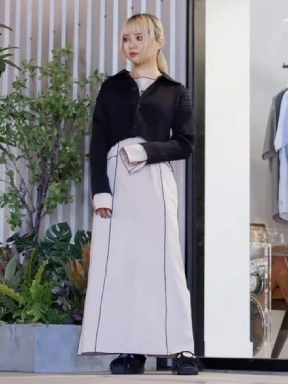 黒ラインがシルエットを綺麗見せしてくれます◎ 袖にスリットが入っているのでコーディネートに動きが出て可愛いです(^^)