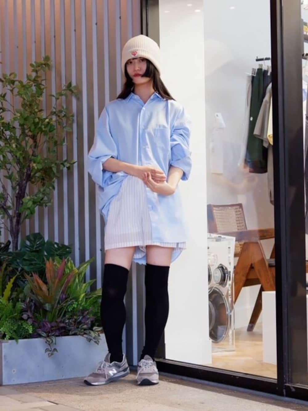 シャツはMENSアイテムですが、女性がオーバーサイズでゆるっと着るのも可愛いです!