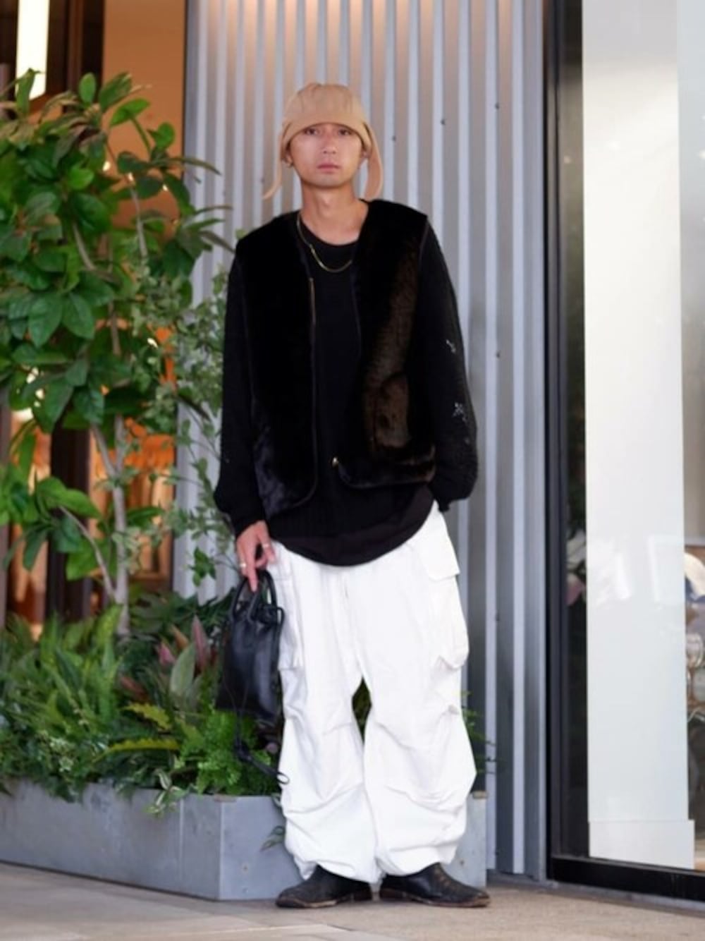 ファーストハンド別注ベストを羽織としてレイヤード。 ベストとしても単品使い頂けますのでオススメ。 【着用サイズ】 ベスト 38 パンツ 3 ニット M