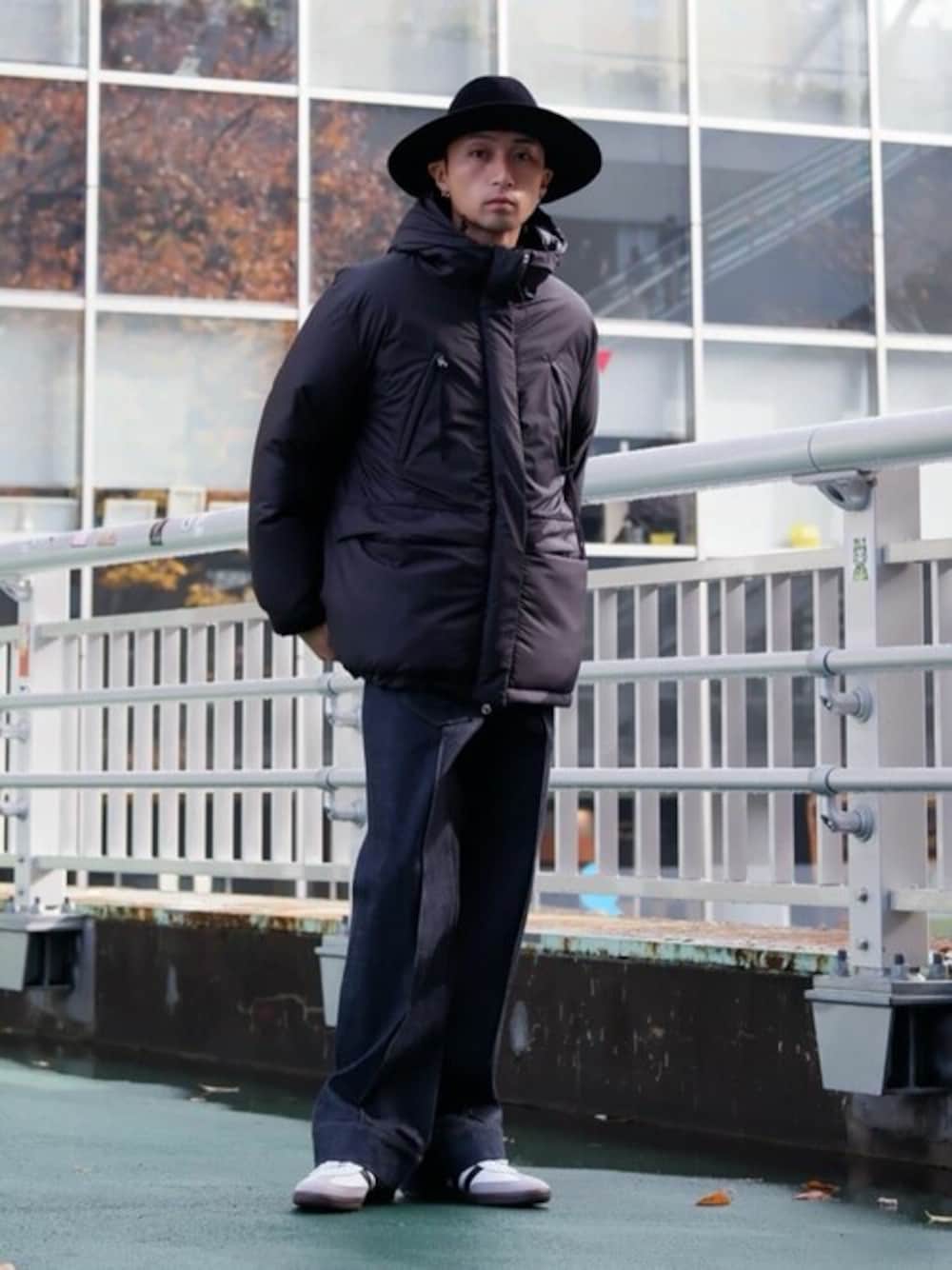 Firsthand(Firsthand HEAD OFFICE)のダウンジャケット/コート「FIRST DOWN × Firsthand/ファーストダウン 別注リサイクルダウンフードジャケット」を使ったコーディネート