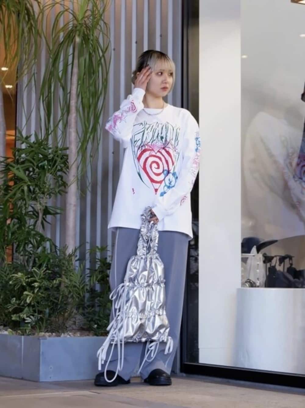 Firsthand(Firsthand HEAD OFFICE)のTシャツ/カットソー「GANNI/ガニー FUTURE HEAVY JERSEY LS T-SHIRT / T3789_490 / ロングスリーブプリントTシャツ」を使ったコーディネート